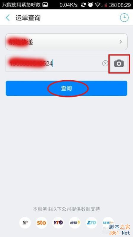 输入快递单号或者点输入框后面的相机来扫描快递单上的条码,然后点“查询”
