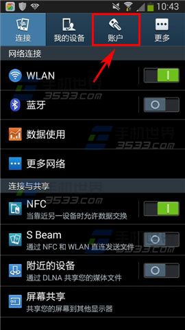 1)首先打开三星note2界面点击【设定】进入,进入后再点击【账户】;(如下图)