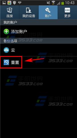 2)在账户界面上点击【重置】,然后再点击【恢复出厂设定】;(如下图)