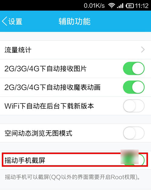 现在手机QQ功能越来越强大了,打开手机QQ界面,在手机QQ设置-辅助功能-摇晃手机截屏功能开启,开启此功能后,摇晃手机就可以截屏了,如下图所示: