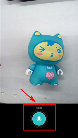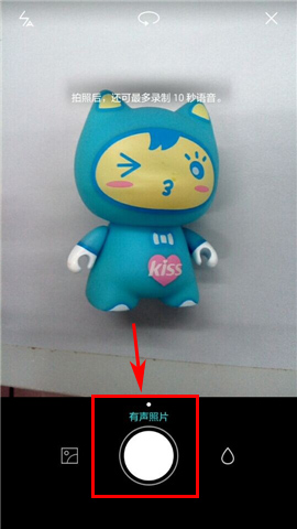 2)进入后再点击红色边框内的【圆圈】拍照,拍完照自动录音,最多可录制10秒声音,也可以点击【蓝色圆圈】提前结束。(如下图)