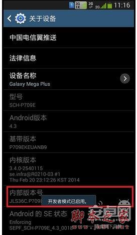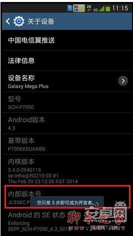 5. 在点击进入到设备中我们会看到有一个【内部版本号】,直现在我们就不停的点击它,直到显示 器开发者模式已启用 即可了