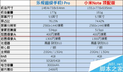 乐1 Pro(左)/ 小米Note 顶配版(右)