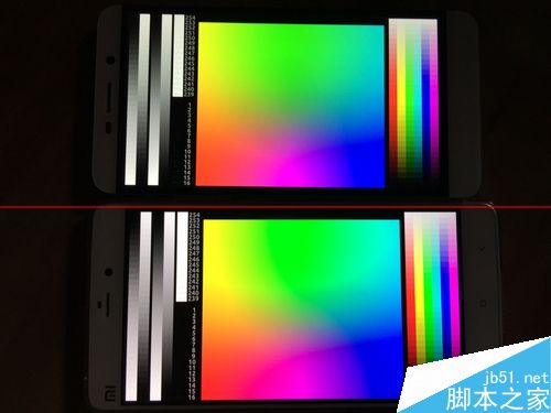三原色测试环节,两款手机都没有出现偏色和边缘漏光现象。