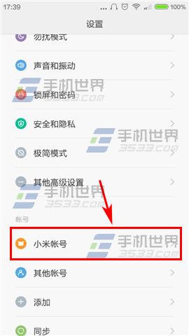 1)首先打开红米2A界面点击【设置】,然后再点击【小米账号】;(如下图)