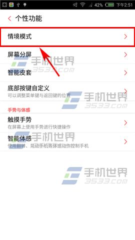 1)打开努比亚Z9mini设置点击【个性功能】进入后再点击【情境模式】;(如下图)