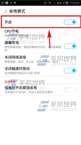 2)然后再点击【省电模式】进入后点击【开启】,还可设置屏幕节电和最强省电等。(如下图)