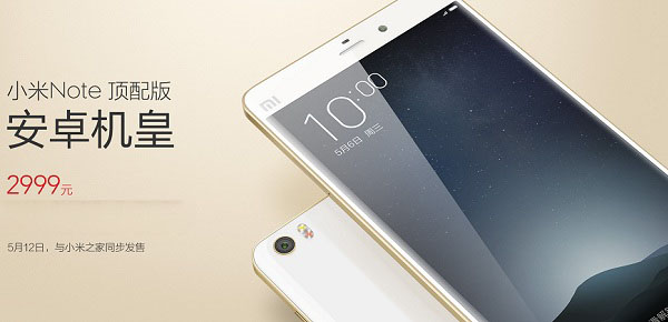 小米Note顶配版将在小米之家限量同步官网销售,5月12日9:30小米之家店内现货开卖。首次卖手机,一上便是机皇,米粉们准备好了吗?