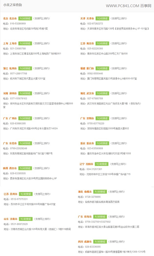 全国小米之家地址一览
