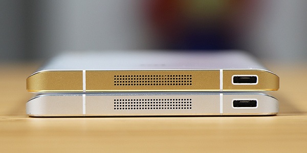 小米Note顶配版和普通版最大的区别还是中框,顶配版采用土豪金金属边框,相比白色或者黑色普通版,颜色反差明显。下图为小米Note顶配版和白色普通版侧面外观对比。