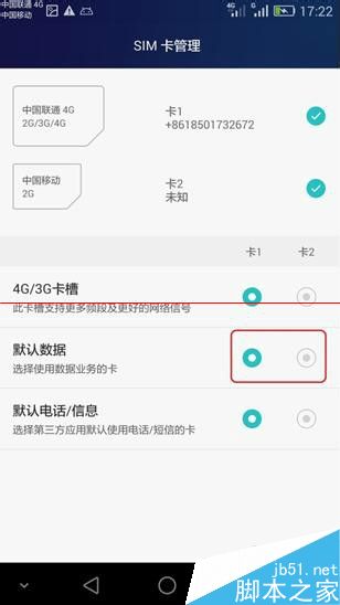 4、确定是否激活的是当前卡的数据流量(激活成功后,会在该卡的信号栏旁边显示上下行箭头之类的图标),可通过 设置-》SIM卡管理 进行具体的设置。
