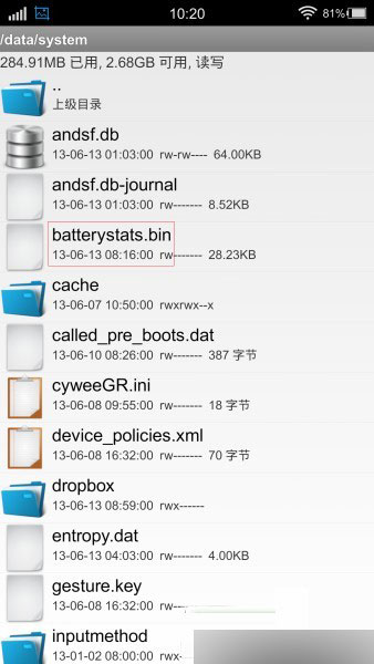 此方法是要删除手机中的电池信息文件即batterystats.bin文件,达到重新记录电池信息的目的