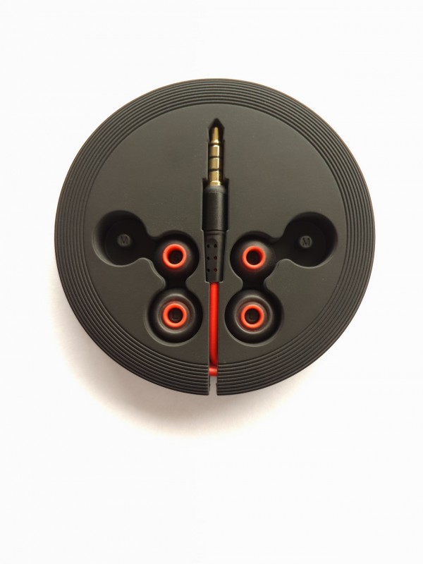 翻转到背面,我们可以看到3.5mm耳机插针和另外两副硅胶耳套(此处分别可收纳Small、Median、和Large三种)。