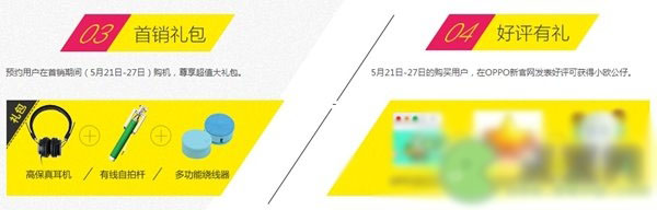 ③首销期间(5月21日到27日),购买OPPO R7,将获得礼包一份,内含高保真耳机、有线自拍杆、多功能绕线器;