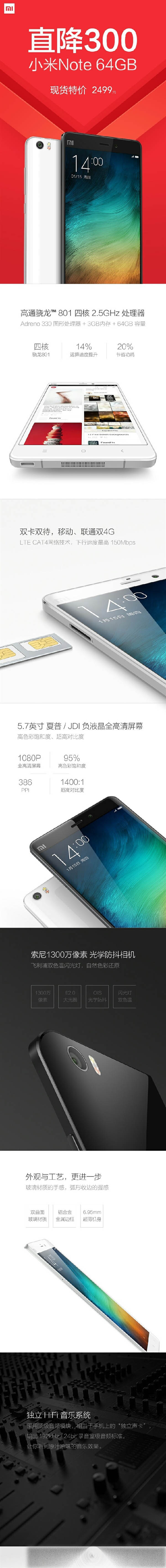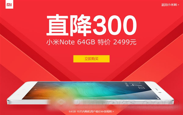 今天上午,小米正式宣布将小米Note标准版64GB降价300元销售,目前最新的售价为2499元,仅比16GB版贵了200元,算得上是非常厚道了。