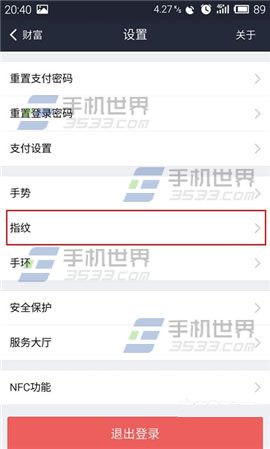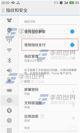 1)打开魅族mx4pro手机【设置】点击【指纹和安全】将【使用指纹支付】开启。在【支付宝】中打开【设置】点击【指纹】。(如下图)