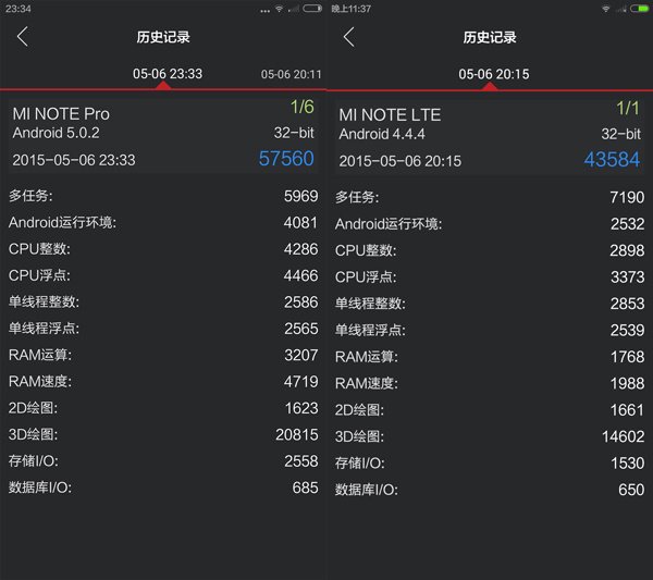 不过值得一提的是,由于强大的CPU和GPU保证,整个游戏运行期间没有掉帧,极其流畅,画面效果丰富。从跑分也可以看出,普通版与旗舰版的差距主要就在CPU和GPU上拉开。建议爱玩大型游戏的发烧友选择顶配版的小米Note。