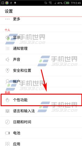 1)首先打开努比亚Z9mini界面点击【设置】,进入后再点击【个性功能】;(如下图)