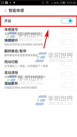2)进入后找到【智能体感】点击进入,然后再点击【开启】,还可根据自己的需求点击开启体感拨号和接听等。(如下图)