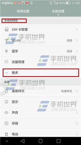 1)打开华为Mate7手机【全部设置】点击【更多】,选择【移动网络】。(如下图)