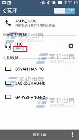 1)打开华硕ZenFone2【蓝牙】功能,把蓝牙耳机连接配对好华硕ZenFone2。(如下图)