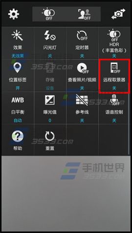 1)打开三星S5手机【相机】点击【设置】,找到并点击【远程取景器】。(如下图)