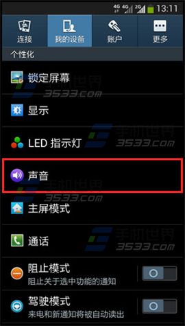 打开三星note2手机【设定】在【我的设备】中点击【声音】,将【触摸声音】取消勾选即可。(如下图)