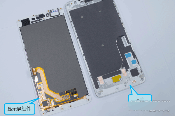 2、显示屏模组和主上装饰框一同取下
