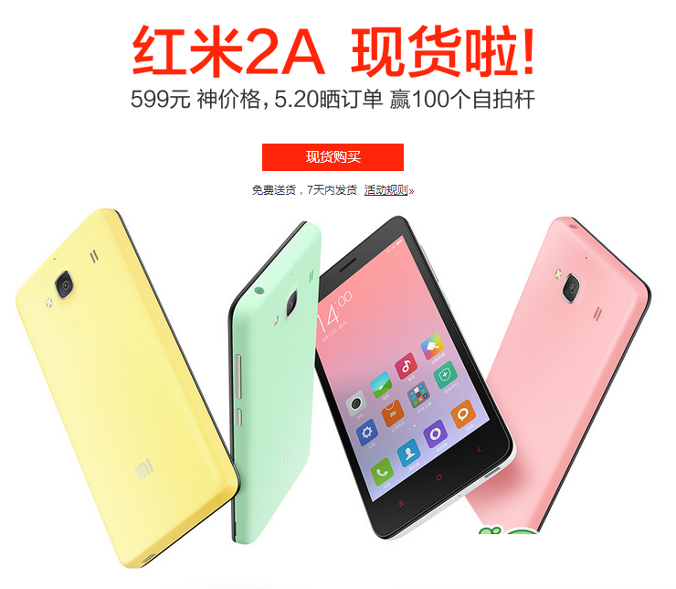 5月20日消息,小米三月底发布的新机红米2A今天起正式现货开卖,该机也成为小米机型中较快放开销售的一款。