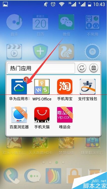 第二步,通过“热门应用”文件夹,找到“华为应用市场”并打开应用;