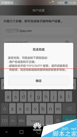 4、到此我们所有的设置都完成了,服务成功开启,只需要去手机中输入密码账号即可正常使用了,需要提醒的是:在第三方客户端登录使用的密码为邮箱独立密码,而非QQ密码。