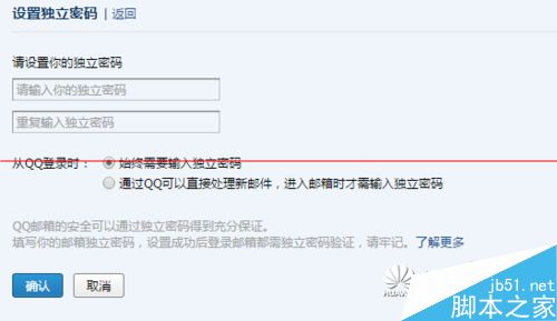 3、设置邮箱独立密码,如果第一次设置,设置过程中会提示输入独立密码。