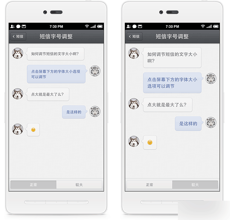 新增:“设置 - 短信” 中增加短信字号设置选项