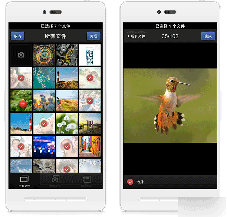 新增:其他应用调起相册时的图片多选状态和大图预览界面