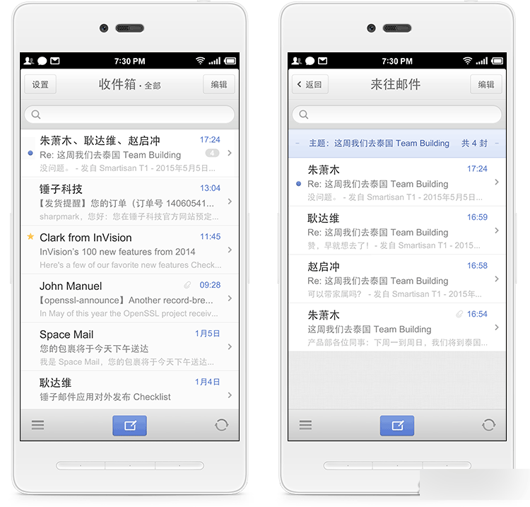 新增:支持将同一主题的来往邮件自动合并成一组展示