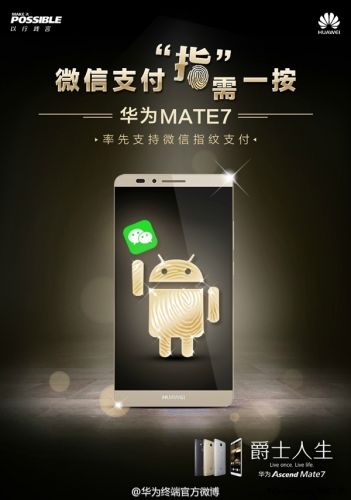 好消息是,华为Mate 7现在又迎来了一个全新的功能:微信指纹支付,用户只需升级至Android微信6.2版,即可使用该功能。