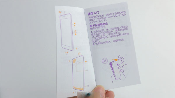 抽屉式侧拉包装,除了电池和保修单说明书外,就只有电源适配器和 mirco-USB 数据线,说明书的字体和字体大小都有股WP的味道。