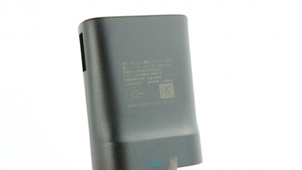 这是笔者遇到过的最轻的电源适配器,USB接口在侧边,顶部是微软的标志。5V/0.9A输出面对机器2500mAh的电池,充电时间注定会比较长(估计要接近3个钟才能充满)。