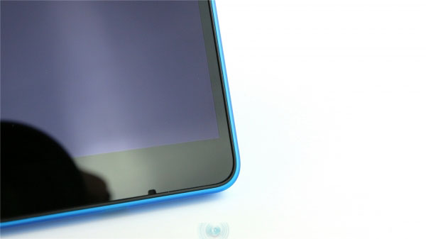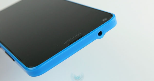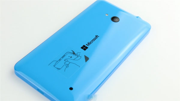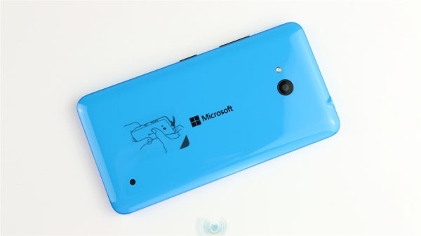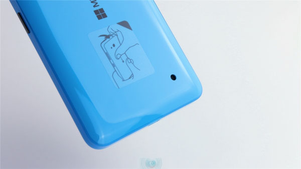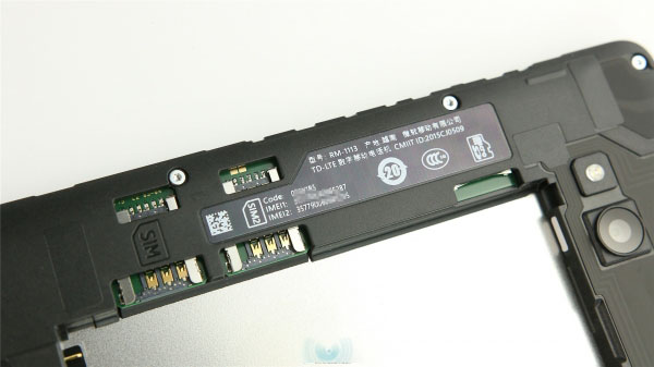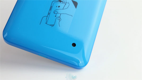背盖材质类似魅族的双料注塑,有种晶莹剔透的感觉。背面正中是微软商标,顶部是闪光灯和摄像头,我们拿到的机器出现了轻微的不对位问题。