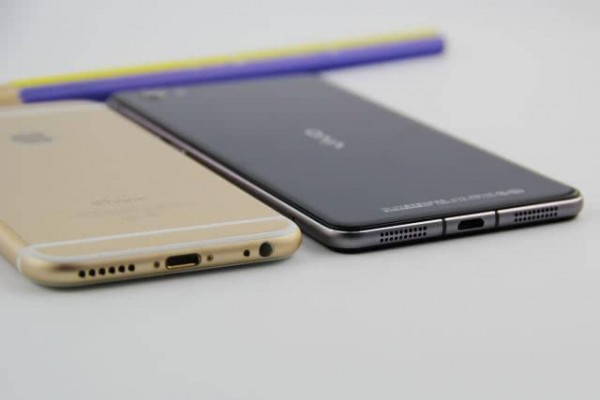 底部设计各有千秋,iPhone 6排布更加紧凑,将外放、充电输入口,麦克风孔,耳机孔都设计在了底部,而vivo X5Pro 则是更加注重外放的听感,采用了双输出音孔设计。只为用户提供更多细节。如果音质也算颜值的话,那么还需要比不比呢!