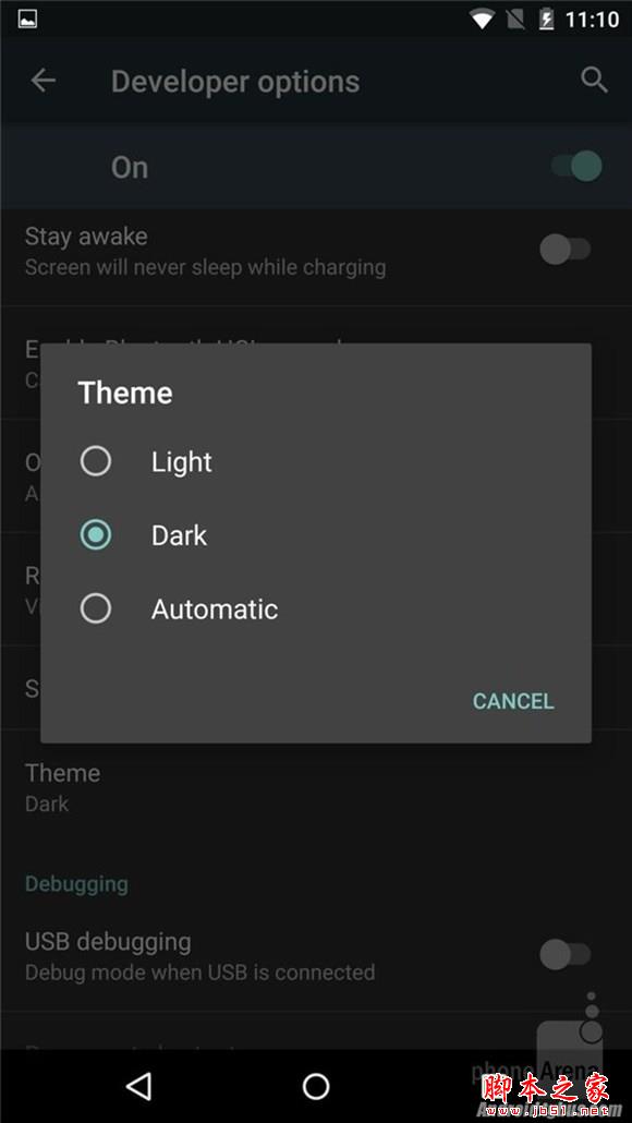 ▲开发者选项中,新增了一项主题设置功能,除了深色以及浅色设置外,还带有一个自动模式,似乎是通过时间来进行设定。