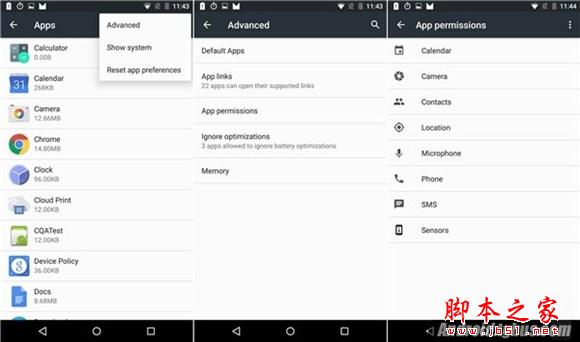 ▲Android M提供了全新的应用权限管理模式,你不需要在每次安装新应用时不停的选择权限提示框。现在,你可以在权限设置选项中,统一进行设定。