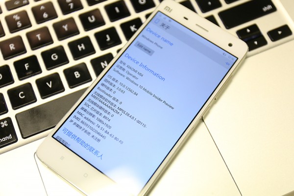 昨天,小米官方宣布,小米4 Windows 10 Mobile系统的内测正式开启,不过仅限于北京地区用户,且要通过筛选之后才能获得资格。如果你渴望Win10 ROM,不妨先来看看刷入小米4之后的样子吧,有网友已经在论坛中晒出了一组真机图,看上去美美哒。需要注意的是,小米4的Win10 Mobile系统版本号为10.0.12562.84,其实就是微软向广大Lumia用户推送的Window.