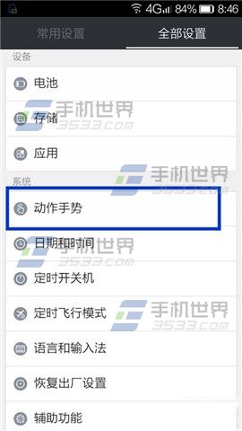 打开金立S7【全部设置】选择【动作手势】,将【体感接听】勾选即可。(如下图)