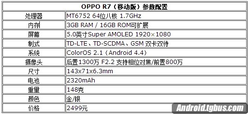 配置方面,OPPO R7搭载了主流的MT6752处理器,配备3GB RAM和16GB ROM。MT6752在此前的一些评测有着不错的表现,特别是保持高性能的情况下功耗发热都让人满意。3GB RAM目前还属于旗舰手机的标配,R7此番采用让运行的流畅度得到了更好的保障。