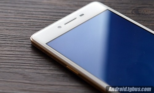 可以看到,OPPO R7的边框横截面略成梯形。好处是让手掌更好握持机身,不过也带来了边框与面板之间的位置有点“咯手”。