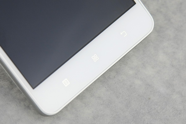 纯白的前面板上部设置有听筒和距离、光线传感器,还有一颗200万像素的前置摄像头。听筒部分采用浮出式金属网罩设计,在有效阻挡灰尘的同时也能增加颜值。屏幕下方则联想传统风格的三大功能键,其中Home键是联想标志性的四叶草图标,不过三颗触控键并没有设置背光。虽然是一款5.5寸屏幕的机器,但得益于窄边框和高屏占比设计,也让单手操作变得不那么困难。