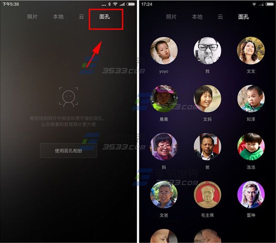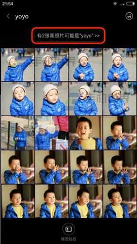 1)打开小米Note【相册】点击【面孔】,第一次使用时它会自动将面孔分类整理。(如下图)