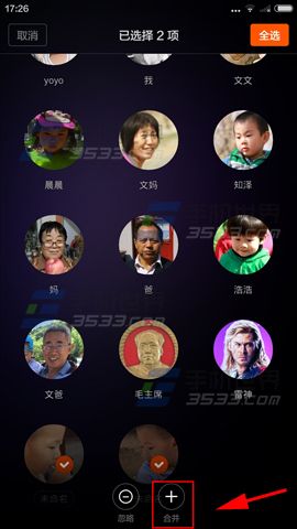 3)一些未能识别出来的面孔可以【合并】,在面孔相册里我们还可以【修改名字】及【查找】可能是同一面孔的相片。(如下图)