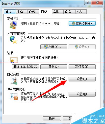 4、进入”内容界面“,在【自动完成】选项点击后方【设置】